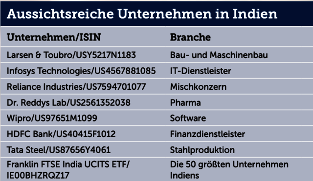 Jedes Jahr verlassen 1,5 Mio. gut ausgebildete Ingenieure indische Universitäten. Sie alle sprechen fließend Englisch, und 10 % von ihnen haben ein Auslandspraktikum absolviert. Der Internationale Währungsfonds IWF prognostiziert für Indien ein Wirtschaftswachstum von 6,1 % für das laufende Jahr und 6,8 % für 2024. Laut eines Berichts der State Bank of India hat das Land bereits Großbritannien als fünftgrößte Volkswirtschaft der Welt überholt und könnte auch Deutschland und Japan abhängen, um im Jahr 2029 die drittgrößte Volkswirtschaft hinter den USA und China zu werden.